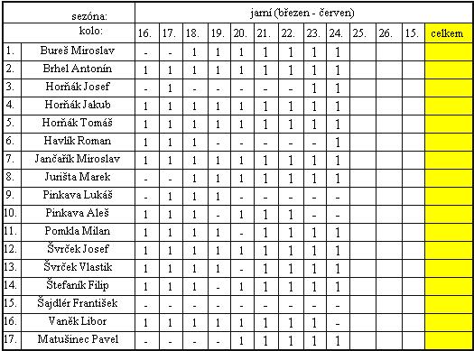 Aktuální tabulka